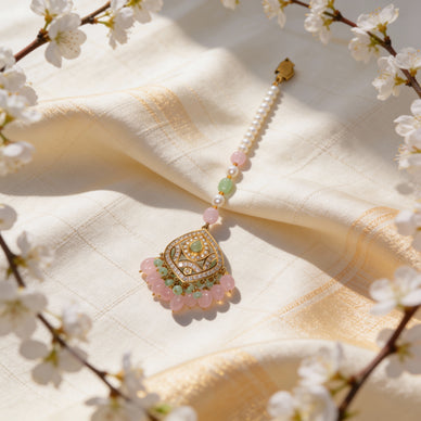 Rooted in timeless Indian heritage, the Padmavati Heirloom Gold Mang Tikka is a celebration of grace, femininity, and sacred adornment. Intricately handcrafted in warm gold tones, this mang tikka features delicate meenakari-inspired detailing, luminous pearls, and vibrant gemstone accents that come together in perfect harmony. Designed to frame the face with elegance, it adds a regal finishing touch to bridal and festive ensembles alike.